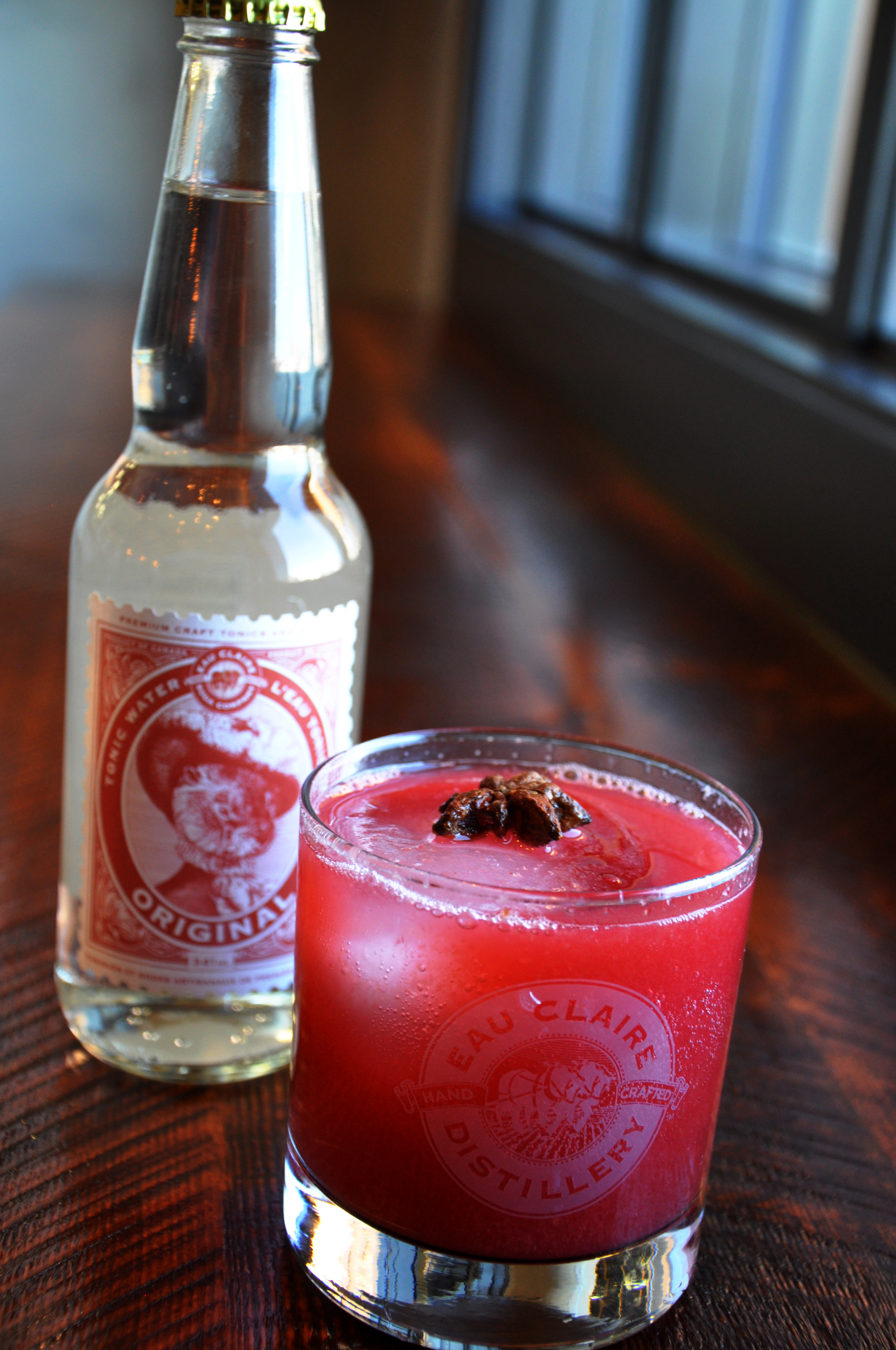 Muddle B.C cherries with star anise and Eau Claire Distillery Parlour Gin, pour into a rocks glass with a large ice cube, top with Eau Claire Soda Company Tonic Water, stir to combine. Serve with ½ bottle of Tonic Water. Garnish with fresh cherries on a skewer – or a nice Canadian Flag!